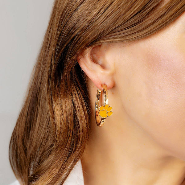 Clemson Tigers Enamel Logo Hoop Earrings in Orange