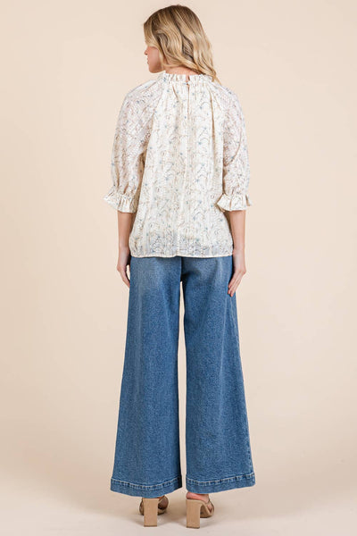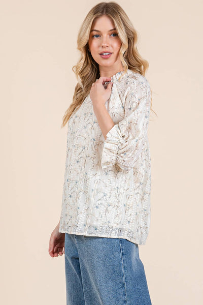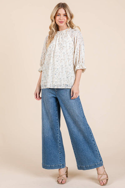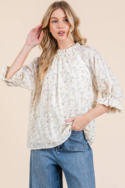 Embrace the charm and whimsy of our Kelly Ann Top. With a high mock neckline adorned with ruffle detail for a dash of romance, and long sleeves boasting elasticised ruffle cuffs, this top is a fun and fashionable nod to vintage styles.