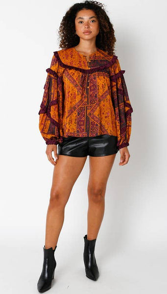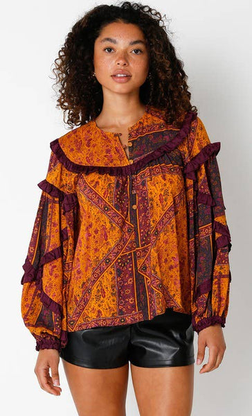 Our Jazlyn Top features a half way button down and a ruched sleeve detail Woven. Oversized fit