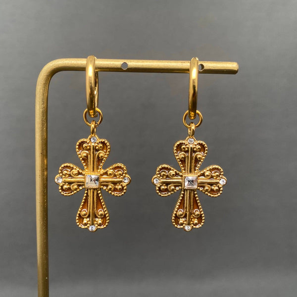 WP: Zircon inlaid Cross 18K Gold Plated SS Huggie Earrings